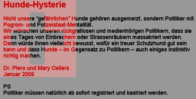 Save The Beauty Of Ardmore (Co. Waterford)! The next contribution deals with the Swiss physiotherapy training: Trends In Physiotherapy Training The following text is about the homepage she shared with me until March 2005: Mean People Mary on the SPV’s general assembly that was turned into a tribunal against her. Pity I couldn’t be there to see how strong and loyal she was in defending “Shamrock.ch” against the malevolent accusations of the morons that had instigated the witch hunt against her. This club sucks ... Big time. Mean People 2 Mary on the “work” of the “Blaue Kommission”: This Club Sucks Mary the rebel: This Club Sucks 2 Mary on feminism – brilliant! She puts her finger right on the sore spot (they don’t call her “the healer” for nothing): Stupid Feminists  |